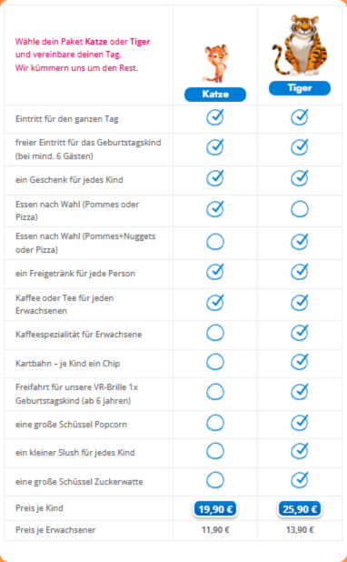 | Wähle dein Paket Katze oder Tiger und vereinbare deinen Tag. Wir kümmern uns um den Rest. |